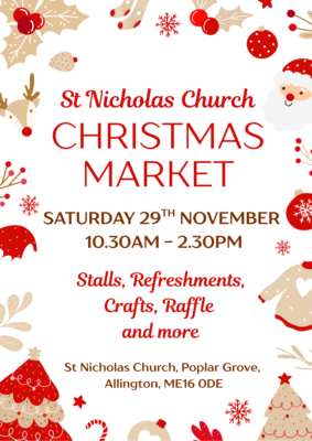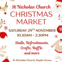 Sat 1st November 4pm A Time to Remember Sun 2nd November 10am Holy Communion 10am Sunday Explorers 6pm JAHFA Mon 3rd November Tues 4th November 10am Tuesday Café (doors open at 9.30am) Weds 5th November 10am Holy Communion Thurs 6th November Fri 7th November 10am Faith Explorers Sat 8th November Sun 9th November 10am Café Church with Act of Remembrance Mon 10th November 7pm Prayer Meeting at St Nic’s Tues 11th November 10am Tuesday Café (doors open at 9.30am) Weds 12th November 6pm Evening Communion Thurs 13th November Fri 14th November 9.30am Mums and Babes Sat 15th November Sun 16th November 10am Oasis Communion 10am Sunday Explorers Mon 17th November Tues 18th November 10am Tuesday Café (doors open at 9.30am) Weds 19th November Thurs 20th November 2.30pm Mothers Union Fri 21st November 7.30pm Faith Explorers Sat 22nd November Sun 23rd November 8am Holy Communion 10am Morning Worship 10am Sunday Explorers 5pm Taize Service Mon 24th November Tues 25th November 10am Tuesday Café (doors open at 9.30am) Weds 26th November Thurs 27th November Fri 28th November Sat 29th November 10.30am – 2.30pm St Nicholas Church Christmas Market Sun 30th November 10am All Age Service Dates: from 1st November until 30th November 2025