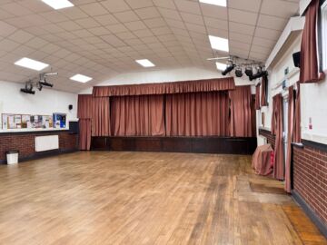 The main hall has a good range of facilities including a stage equipped with lighting, a storage room, toilets, tables and chairs together with a full kitchen.
