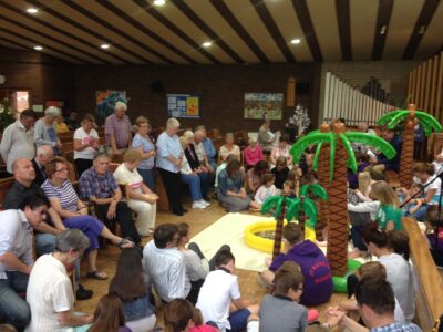10 years ago as part of the St Nicholas 40th Birthday Celebrations we updated the name of our all age services from Hosanna to Oasis. The launch of this new name was at a service at 5pm and many many people came to find rest and refreshment at the oasis we built – perhaps you were one of them. At the time we felt that the name oasis summed up all that we wanted to offer people in a service – rest, refreshment and renewal, to better enable them to live their everyday lives. The idea of an all age afternoon service was then revisited the following January and the monthly Oasis in the Afternoon service was started. Initially it met in the church hall and had many families attending who would have found it difficult to come on a Sunday morning because of sport or work commitments. After a couple of years it moved into the church but still kept the relaxed feel, always starting with refreshments and an activity. It has always aimed to be accessible to all ages and everyone who comes has been able to have a voice. The aim of rest, refreshment and renewal has continued to be a driving force as for many families over the years these are commodities in short supply, so greatly valued! Over the last few years the numbers have fluctuated, although they have been steady since changes made at the beginning of the year. However the time has come to lay this service down to allow for new things to happen… so, watch this space!
